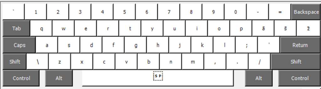 Once downloaded and installed the following keyboard layouts make it possible to enter the diacritical letters ā, s̄ and z̄ directly: